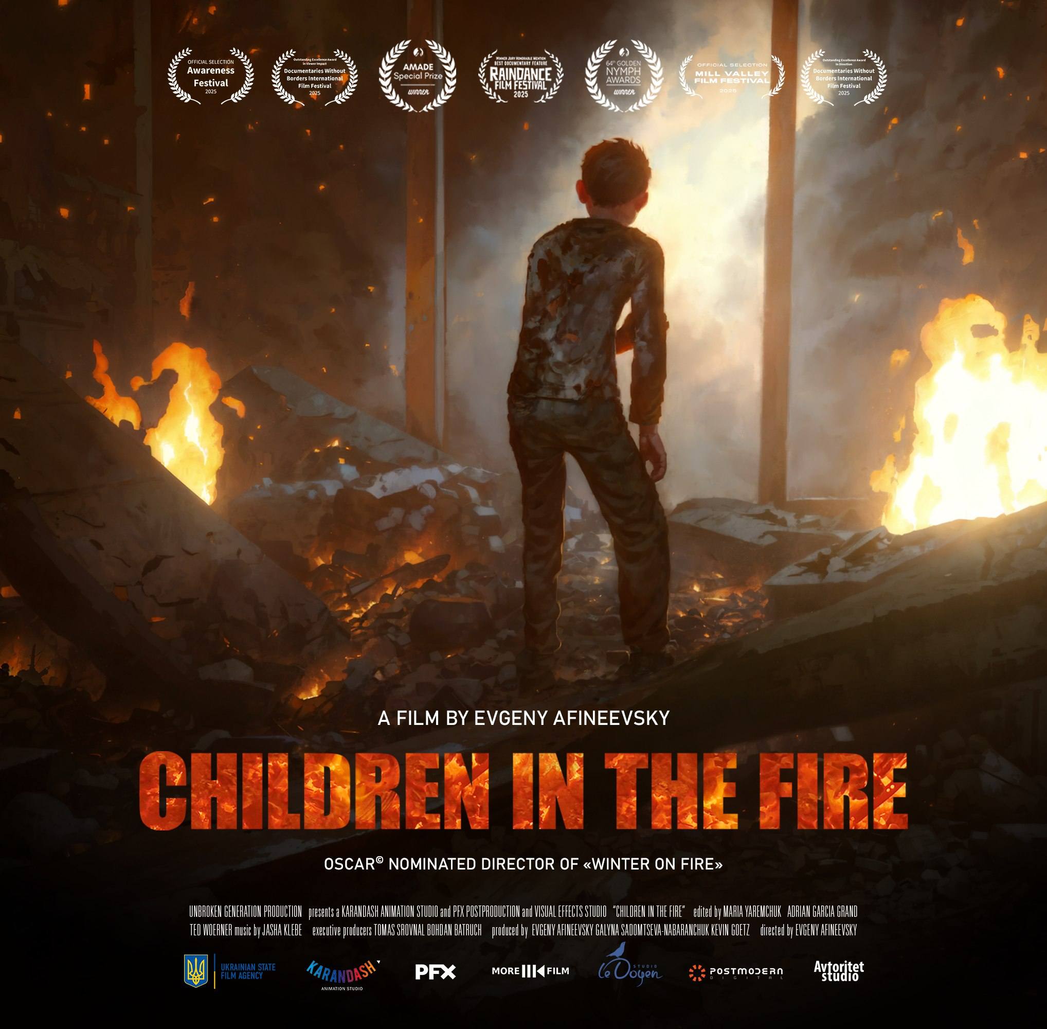 2 жовтня 2025 року в Україні відбулася визначальна культурна подія — українська прем’єра документального фільму «Діти у вогні», яка відбулася в рамках XVI Одеського міжнародного кінофестивалю у кінотеатрі «Жовтень» у Києві